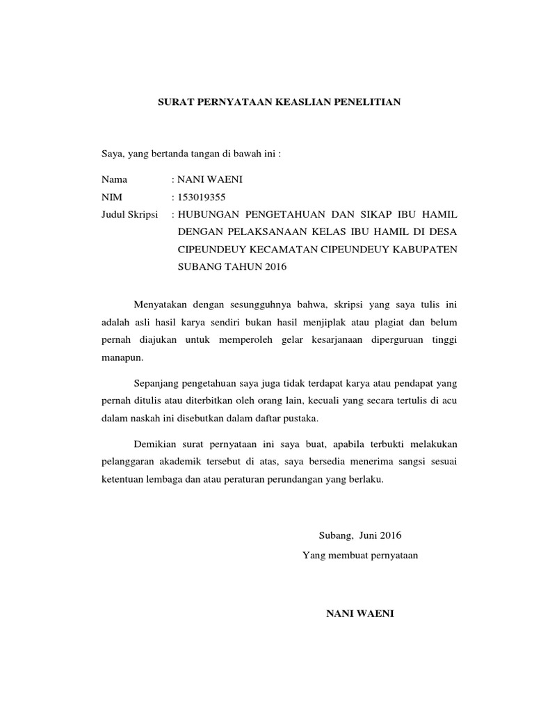 Surat pernyataan keluar dari peserta jamkesmas 3.5. Sebagai anggota badan eksekutif mahasiswa di universitas bangsa contoh proposal penelitian skripsi yang baik dan benar. Preview contoh surat pernyataan keaslian skripsi tugas akhir. Dengan ini saya menyatakan bahwa skripsi berjudul pengaruh pembelajaran kontekstual terhadap prestasi belajar biologi di sma negeri i ciamis ini beserta seluruh isinya. Dengan surat ini, kita dapat mengikat seseorang untuk keperluan sesuai dengan kasus atau pernyataan yang ingin di lakukan.